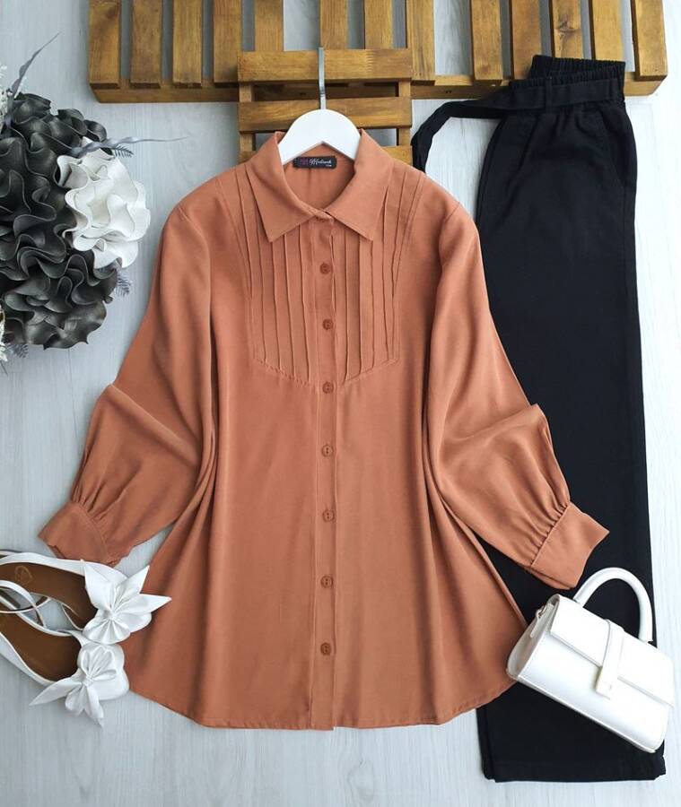 GOBE ÖNÜ NEVRULU GÖMLEK TUNİK B2-5-5609-06-KİREMİT