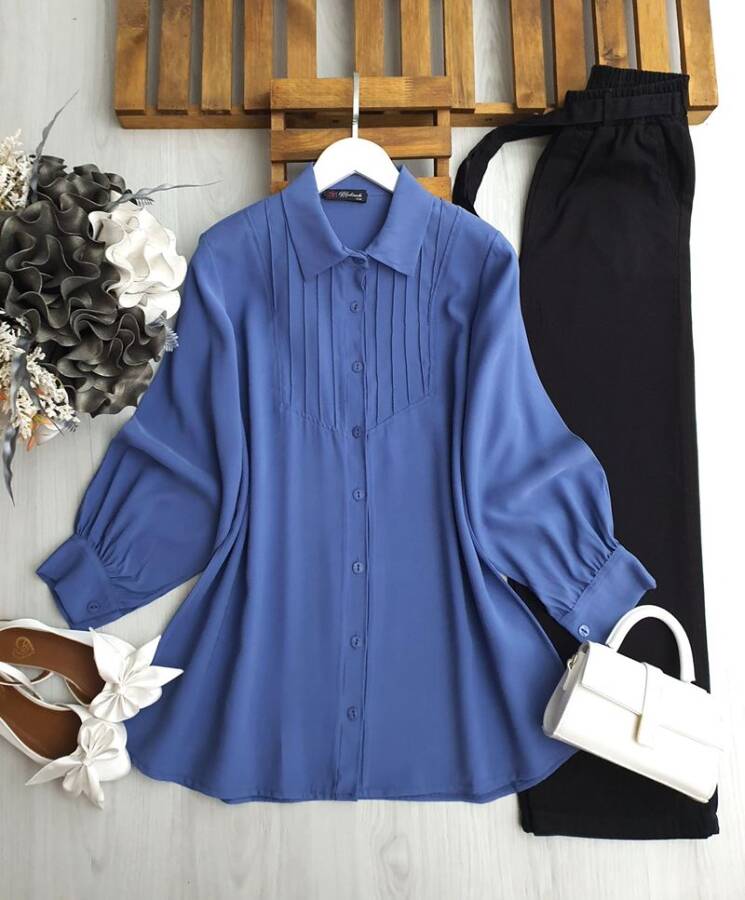 GOBE ÖNÜ NEVRULU GÖMLEK TUNİK B2-5-5609-10-MAVİ