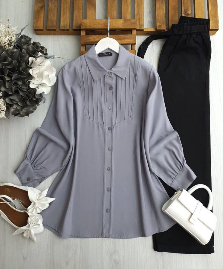 GOBE ÖNÜ NEVRULU GÖMLEK TUNİK B2-5-5609-26-GRİ