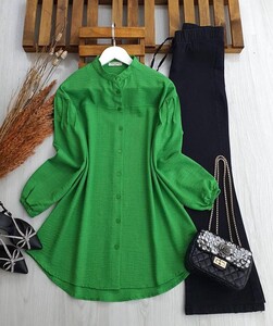 VOVR DİKİŞLİ ÇİFT CEP GÖMLEK TUNİK 5608-07-YEŞİL