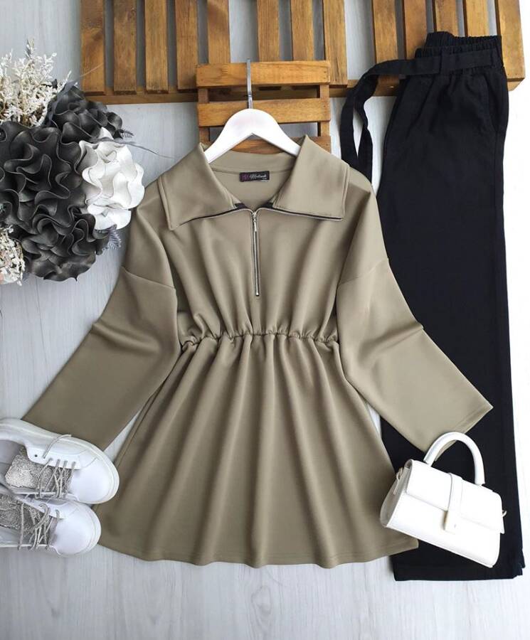 GOYD BELİ LASTİKLİ FERMUARLI KIVRIK YAKA TUNİK B9-1--5649-09-HAKİ