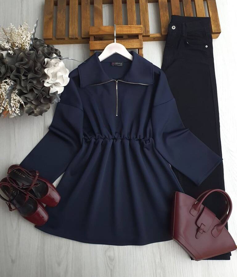 GOYD BELİ LASTİKLİ FERMUARLI KIVRIK YAKA TUNİK 5649-12-LACİVERT