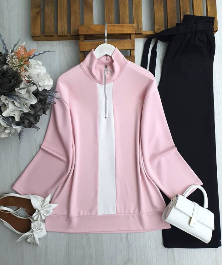 GUCEN BEYAZ GARNİLİ YARIM FERMUARLI TUNİK B3-5-5635-05-PUDRA