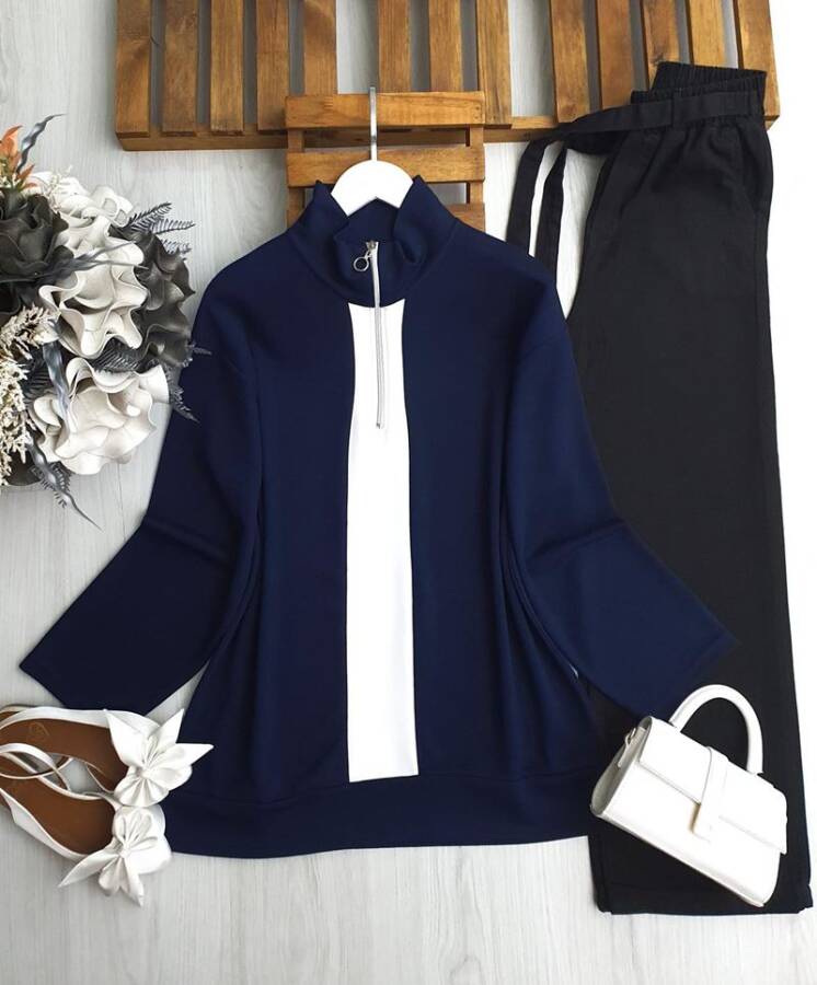 GUCEN BEYAZ GARNİLİ YARIM FERMUARLI TUNİK B3-5-5635-12-LACİVERT