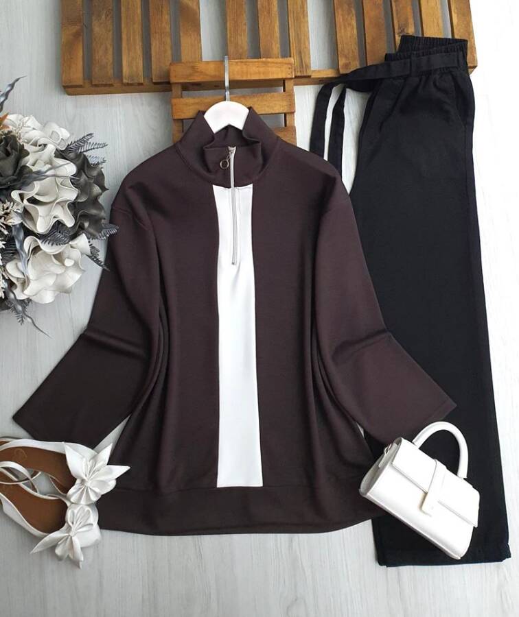 GUCEN BEYAZ GARNİLİ YARIM FERMUARLI TUNİK B3-5-5635-37-KAHVE