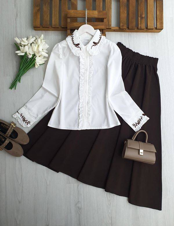 GUVDA YAKA VE KOL NAKIŞLI FIRFIR DETAYLI GÖMLEK 5716-20-BEYAZ