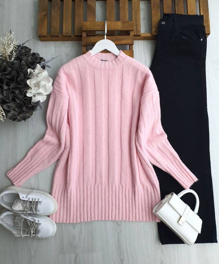 HALBEY DİLİMLİ YUMOŞ TUNİK 8197-05-PUDRA