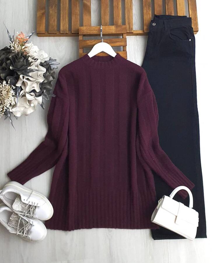 HALBEY DİLİMLİ YUMOŞ TUNİK 8197-18-MÜRDÜM