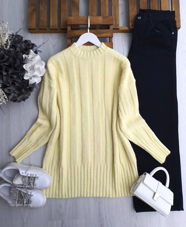 HALBEY DİLİMLİ YUMOŞ TUNİK 8197-23-SARI