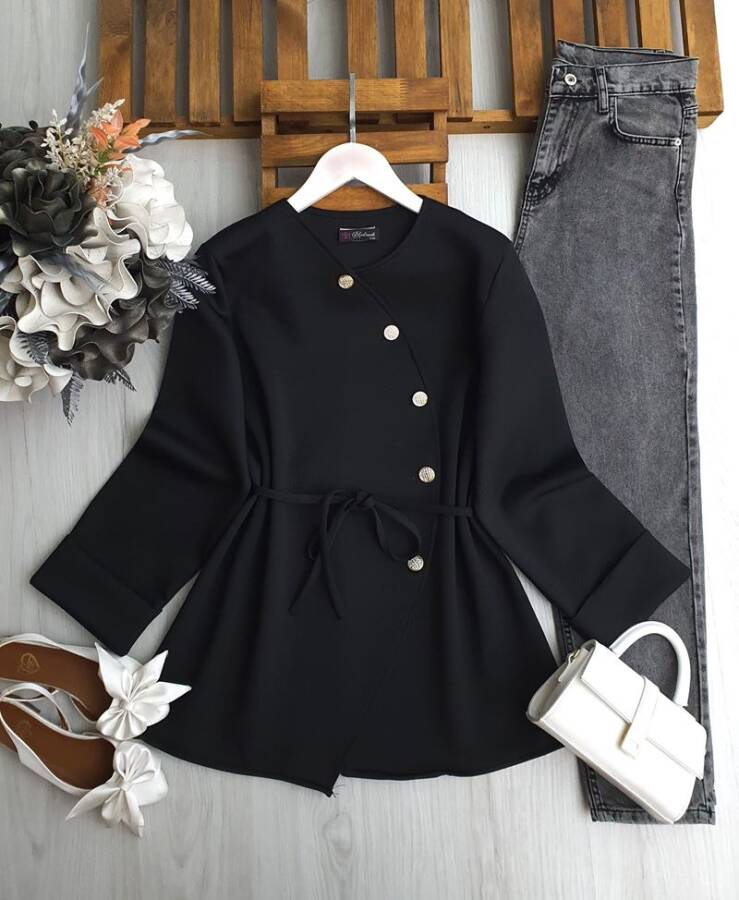 HAPCA CAPRAZ DÜĞMELİ BELİ İPLİ TUNİK 5650-01-SİYAH