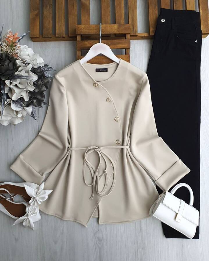 HAPCA CAPRAZ DÜĞMELİ BELİ İPLİ TUNİK 5650-34-BEJ