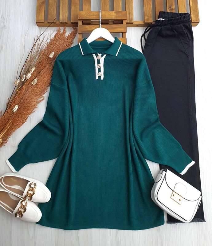HEPLA ÇİZGİLİ YAKALI DÜĞMELİ TRİKO TUNİK B7-2-8109-27-ZÜMRÜT