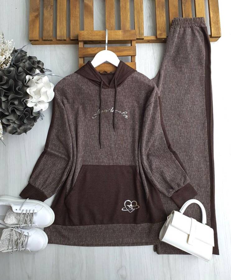 HEVUN KAPŞONLU KANGURU CEP MELAJ İKİLİ TAKIM A4-3-1666-37-KAHVE