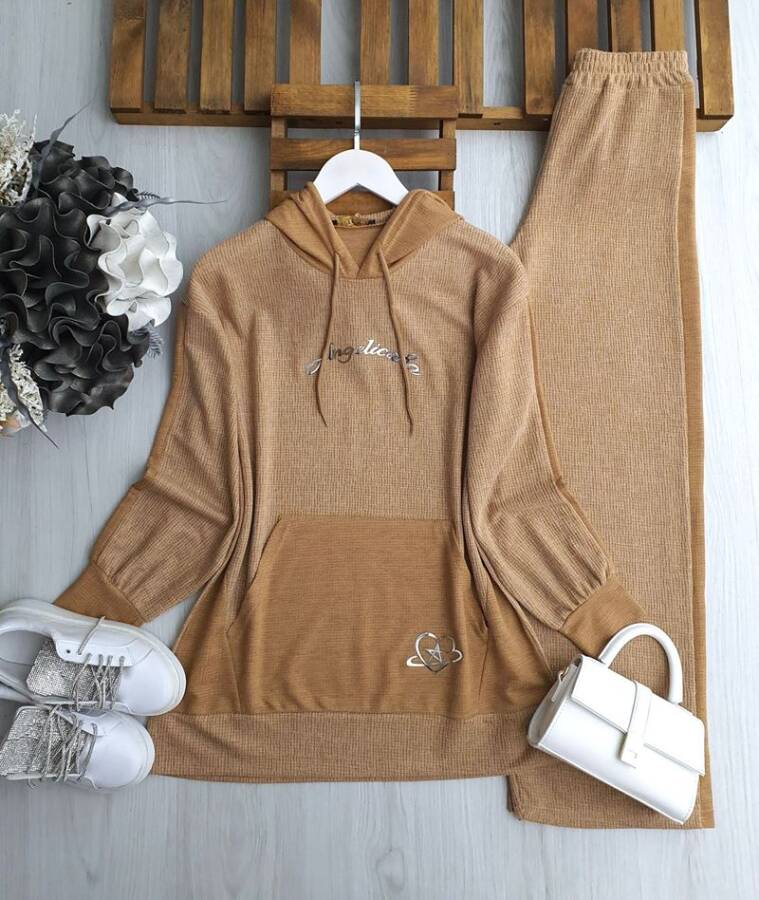 HEVUN KAPŞONLU KANGURU CEP MELAJ İKİLİ TAKIM A4-3-1666-48-BİSKÜVİ