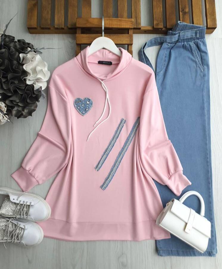 HEYE TAŞLI KOT DETAYLI TUNİK B2-4-5603-05-PUDRA