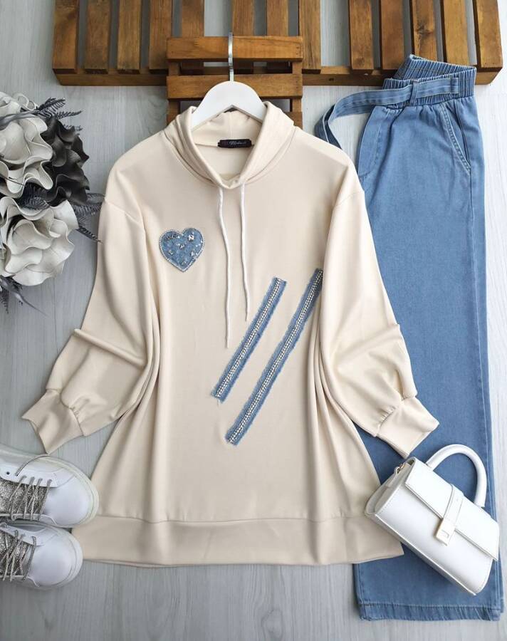 HEYE TAŞLI KOT DETAYLI TUNİK B2-4-5603-34-BEJ
