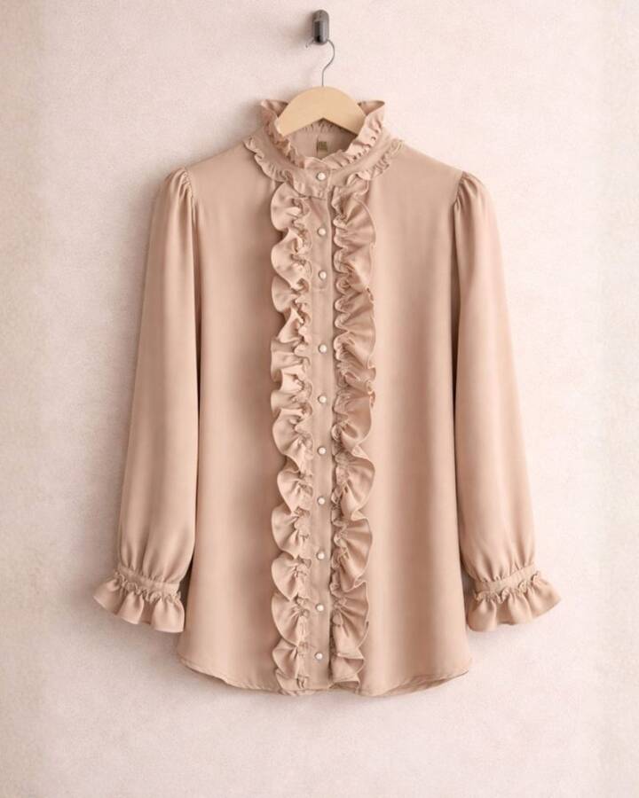 HOFN YAKA VE ÖN FIRFIRLI GÖMLEK A10-2-23258-34-BEJ