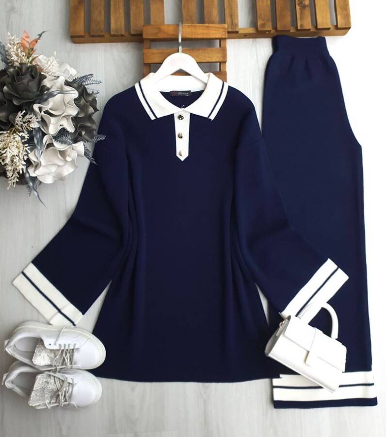 HOİS YAKALI KOL VE PAÇA BEYAZ DOKUMA TRİKO TAKIM 8139-12-LACİVERT