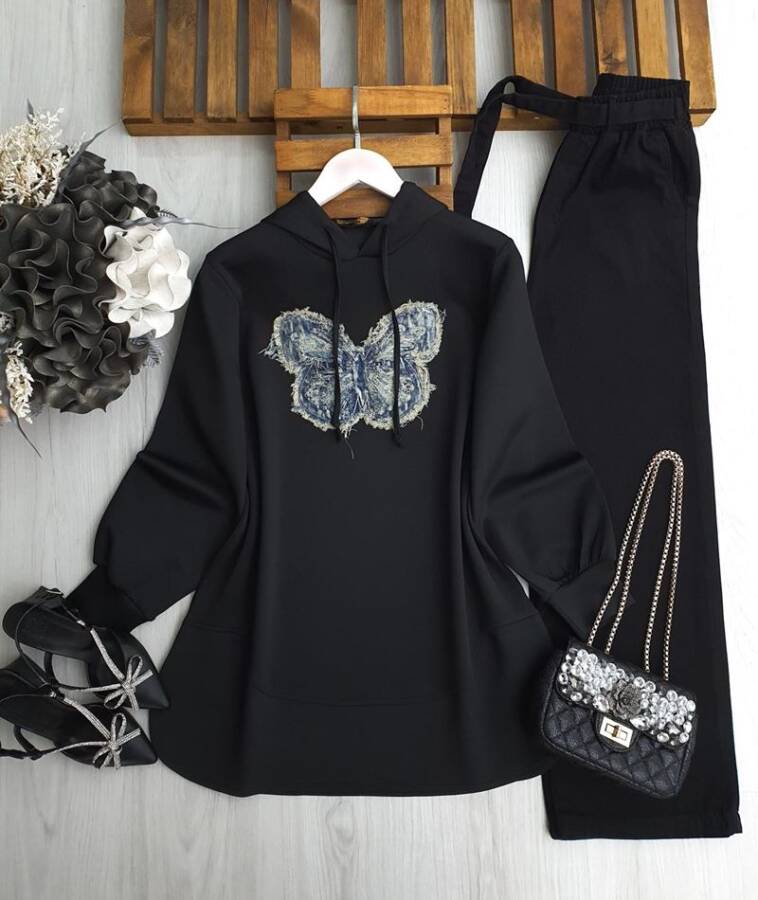 HÖNEF KOT KELEBEKLİ RAHAT KALIP TUNİK 5645-01-SİYAH