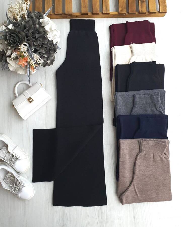 HONGE BELİ LASTİKLİ TRİKO BOL PANTOLON 6094-01-SİYAH