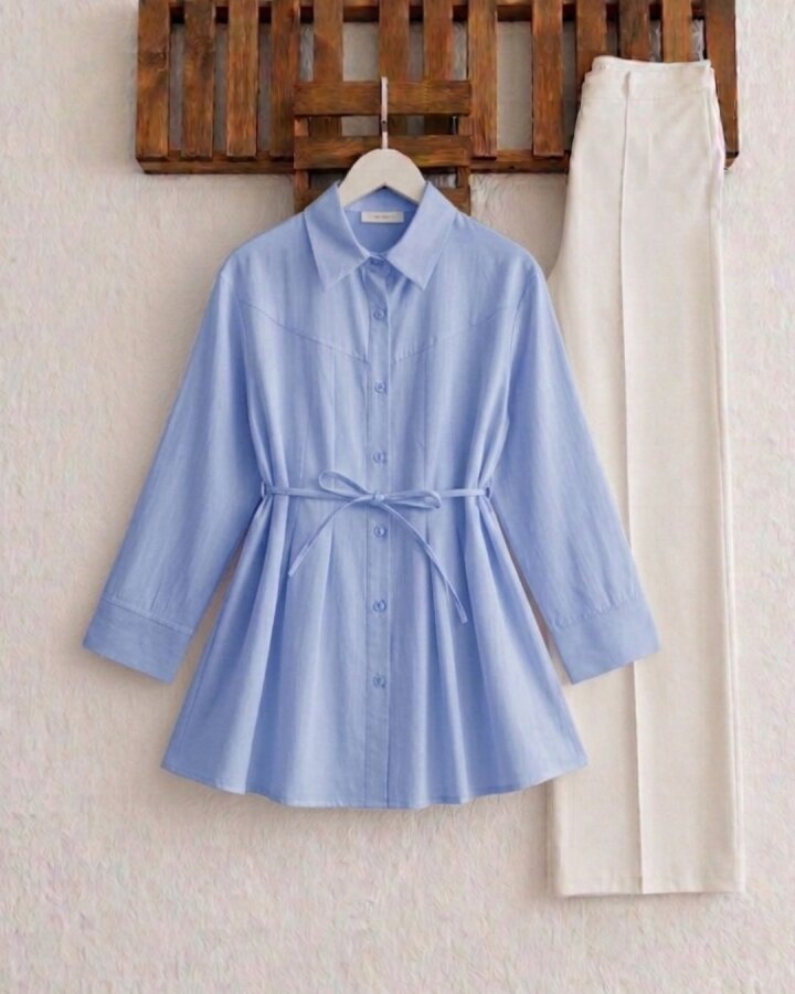 HOVD ÜST DİKİŞLİ ÖN PİLELİ SALAŞ GÖMLEK TUNİK 5686-10-MAVİ