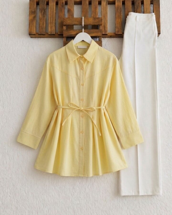 HOVD ÜST DİKİŞLİ ÖN PİLELİ SALAŞ GÖMLEK TUNİK 5686-23-SARI