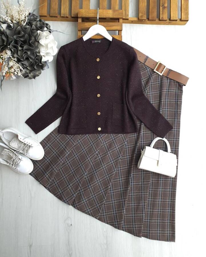 HUCDE SİMLİ ÖNÜ DÜĞMELİ ELİT İPLİK HIRKA 8164-37-KAHVE