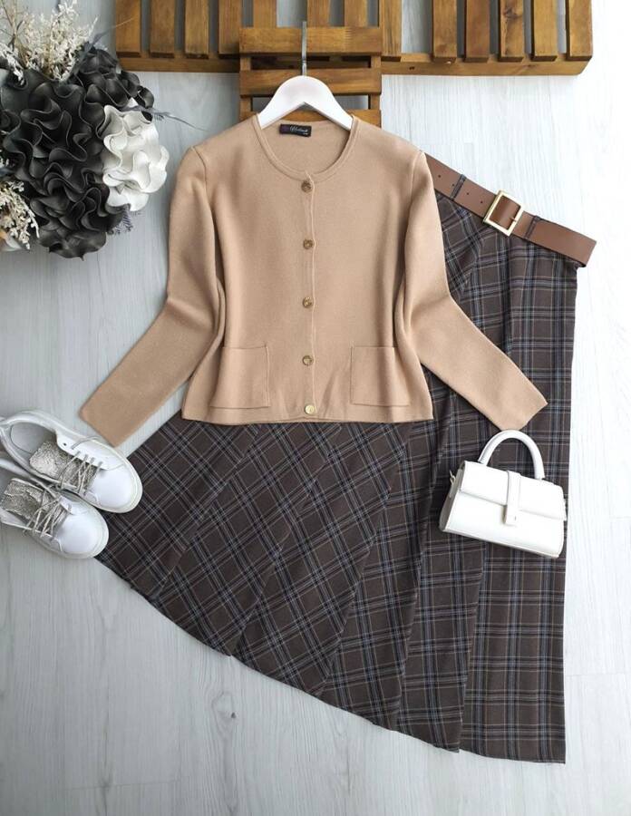 HUCDE SİMLİ ÖNÜ DÜĞMELİ ELİT İPLİK HIRKA 8164-48-BİSKÜVİ