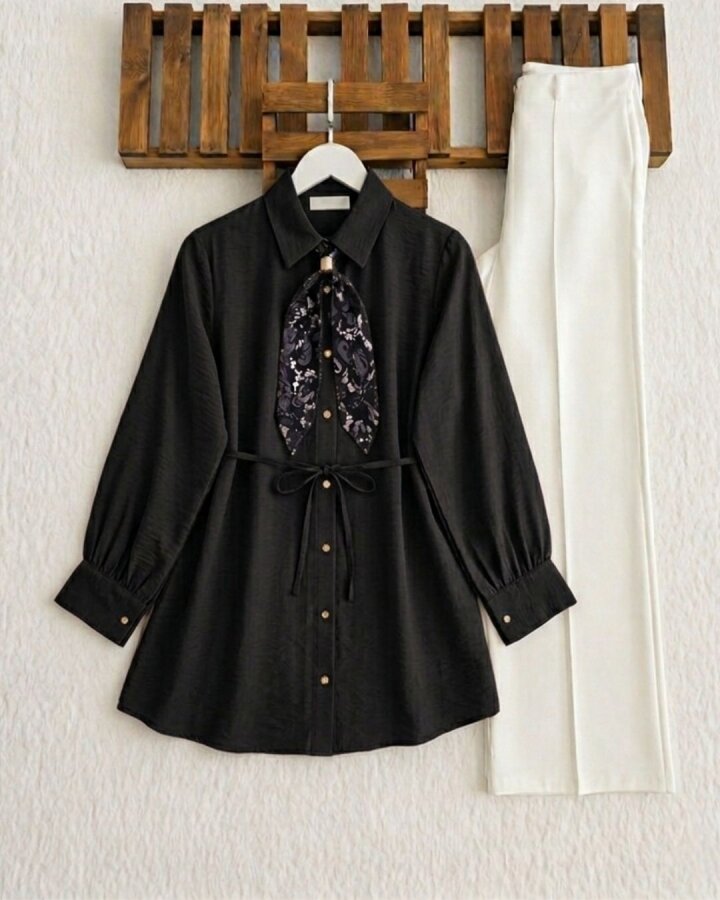 HUDAC TOKALI ŞAL AKSESUARLI GÖMLEK TUNİK A5-1-5722-01-SİYAH