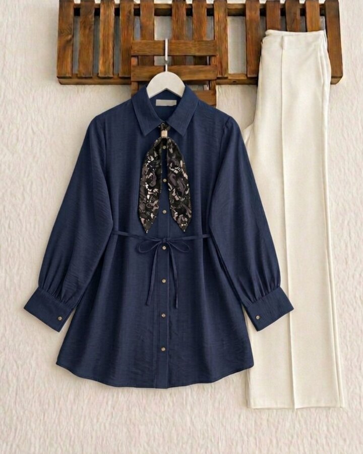 HUDAC TOKALI ŞAL AKSESUARLI GÖMLEK TUNİK A5-1-5722-12-LACİVERT