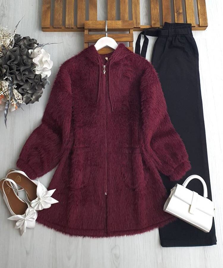 HULC ÖNÜ FERMUARLI KAPŞONLU SAKALLI KAŞE KAP B10-1-3202-04-BORDO