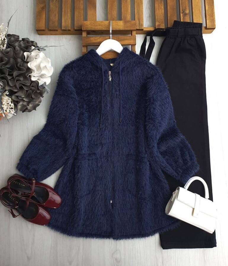 HULC ÖNÜ FERMUARLI KAPŞONLU SAKALLI KAŞE KAP B10-1-3202-12-LACİVERT