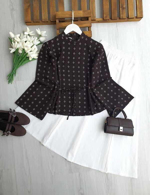 HUNPE GENİŞ KOL ARKADAN FERMUARLI DESENLİ SALAŞ GÖMLEK B8-2-5702-37-KAHVE
