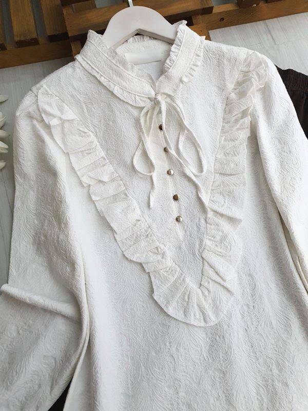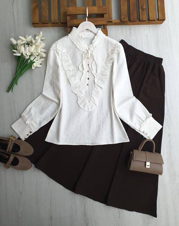 HUVQ ÖNÜ FIRFIRLI İŞLEMELİ GÖMLEK 5726-20-BEYAZ