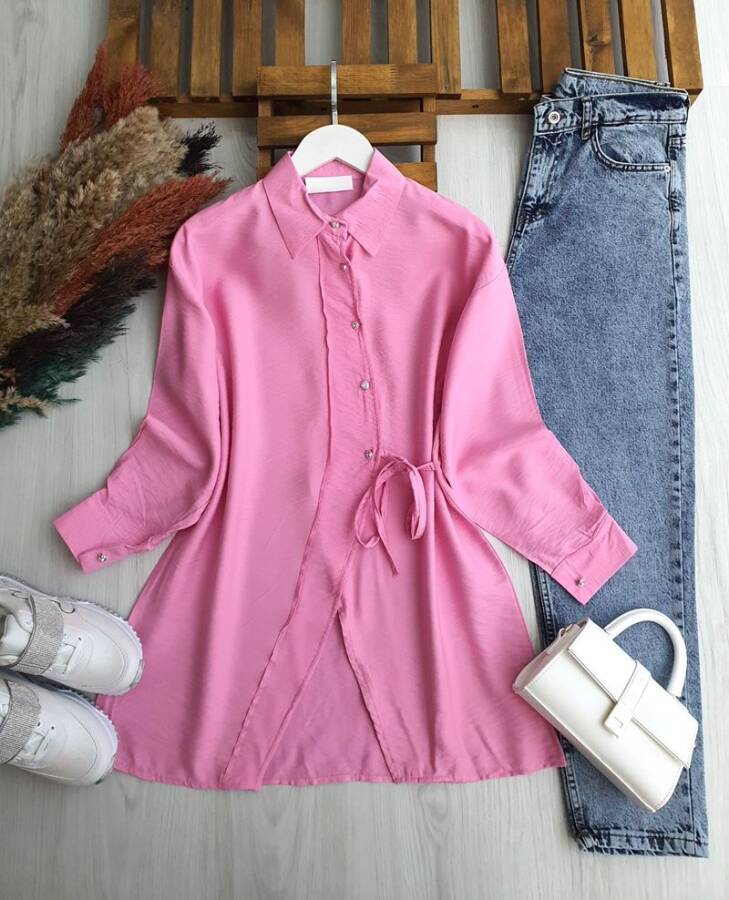 JUZE ÇAPRAZ DÜĞMELİ YAN BAĞCIKLI GÖMLEK TUNİK B1-4-5660-05-PUDRA
