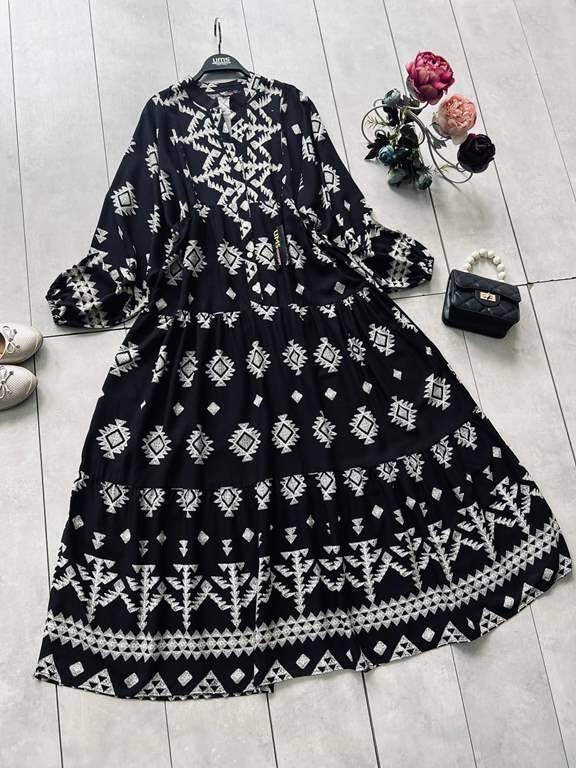 KADE DESENLİ PATLI YARIM DÜĞMELİ SALAŞ ELBİSE D4-2309-01-SİYAH