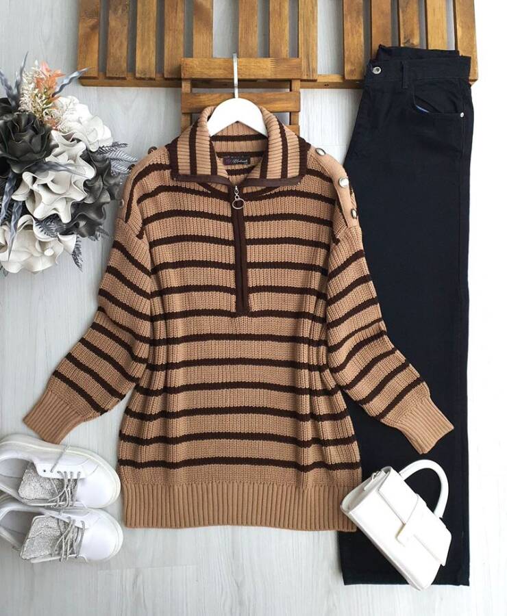 KAFC OMUZ DÜĞMELİ FERMUARLI KIVRIK YAKA TRİKO TUNİK B7-2-8177-48-BİSKÜVİ