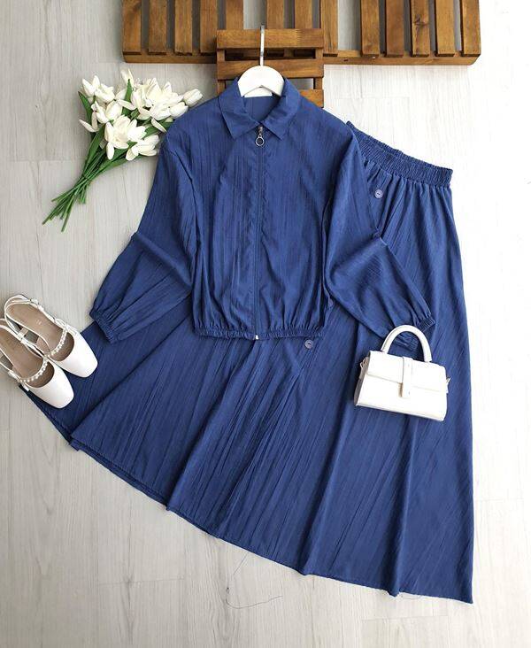 KALBES ÖNÜ FERMUARLI ETEK SÜS DÜĞMELİ İKİLİ TAKIM B3-2-1712-11-İNDİGO