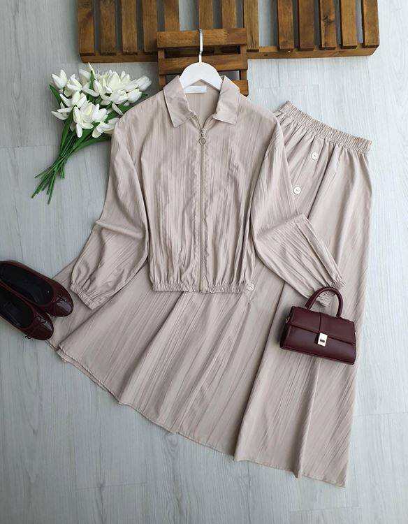 KALBES ÖNÜ FERMUARLI ETEK SÜS DÜĞMELİ İKİLİ TAKIM B3-2-1712-34-BEJ