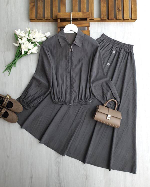 KALBES ÖNÜ FERMUARLI ETEK SÜS DÜĞMELİ İKİLİ TAKIM B3-2-1712-58-FÜME