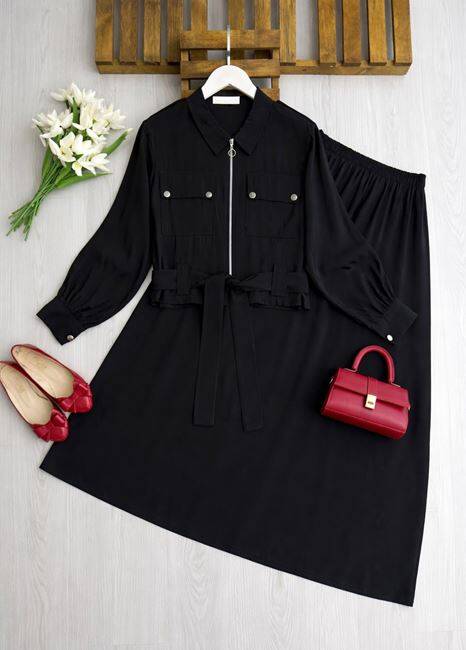 KALN ÖNÜ FERMUARLI KEMERLİ ETEKLİ TAKIM A3-1-1709-01-SİYAH