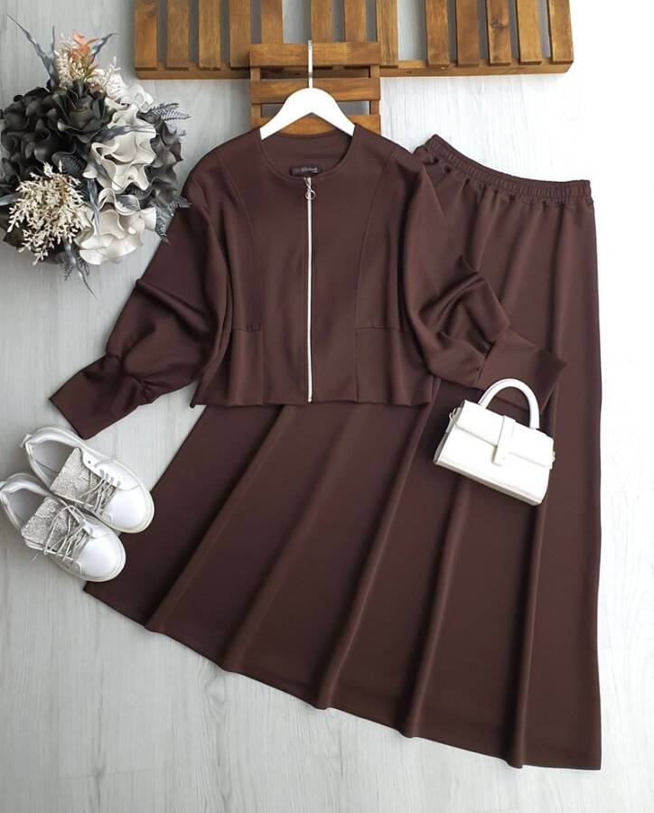 KALYEL MANŞETLİ BALON KOL ETEKLİ TAKIM A5-5-1699-37-KAHVE