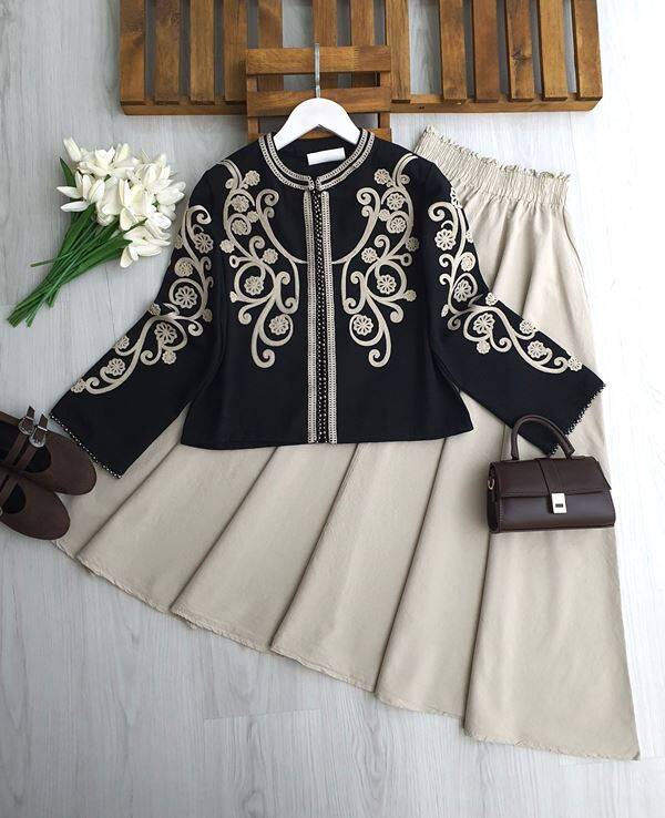 KEFDA KOL VE ÖN İNCİ İŞLEMELİ NAKIŞLI CEKET 3230-01-SİYAH