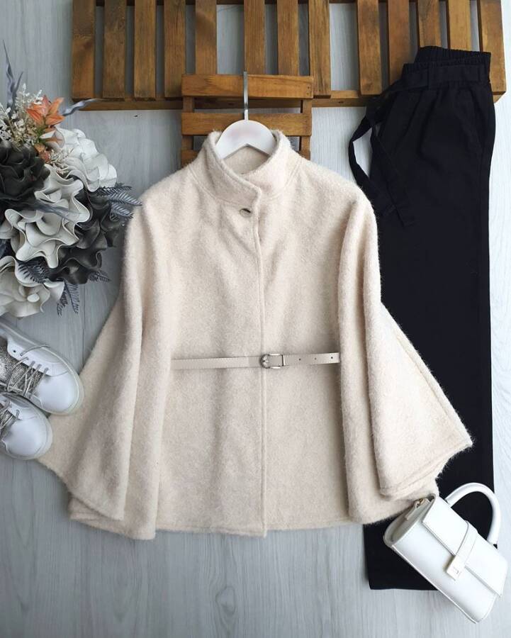 KEMSA TEK DÜĞMELİ KEMERLİ PANÇO A6-4-3211-34-BEJ