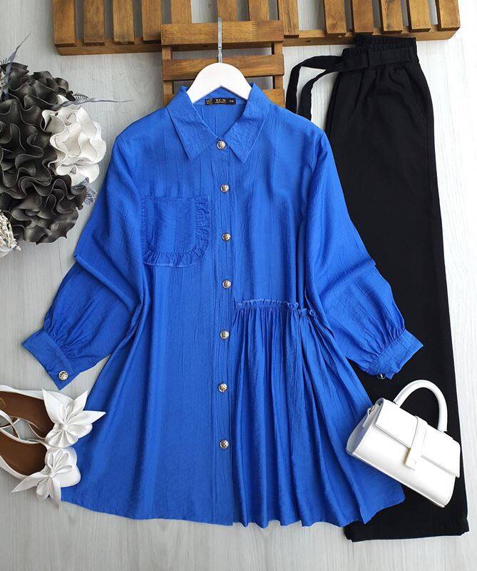 KOEN FIRFIRLI TEK CEP FIRFIR YAN DİKİŞLİ GÖMLEK TUNİK A9-1-5563-11-İNDİGO