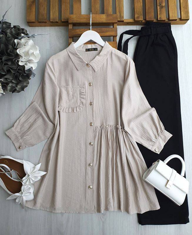 KOEN FIRFIRLI TEK CEP FIRFIR YAN DİKİŞLİ GÖMLEK TUNİK A9-1-5563-34-BEJ