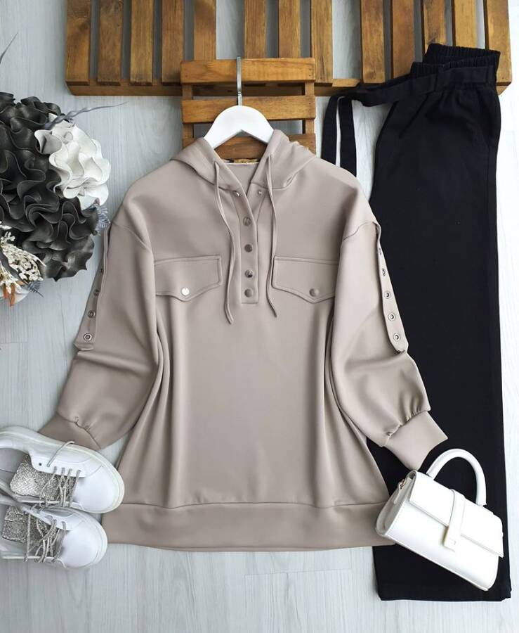 KOFL KUŞGÖZÜ KOL YARIM ÇIT ÇIT DÜĞMELİ CEP KAPAKLI TUNİK 5639-22-TAŞ