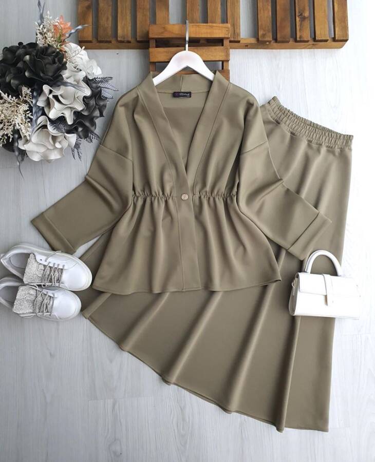 KOFS BELİ LASTİKLİ TEK DÜĞME ETEKLİ TAKIM A6-3-1687-09-HAKİ