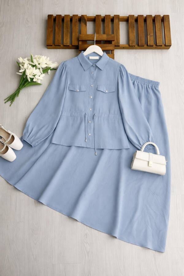 KOLN BELİ TÜNEL BAĞLAMALI CEP KAPAKLI KİLOŞ ETEKLİ TAKIM B10-2-1726-10-MAVİ