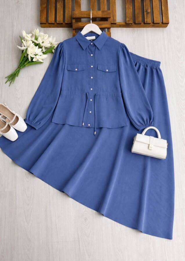 KOLN BELİ TÜNEL BAĞLAMALI CEP KAPAKLI KİLOŞ ETEKLİ TAKIM B10-2-1726-11-İNDİGO